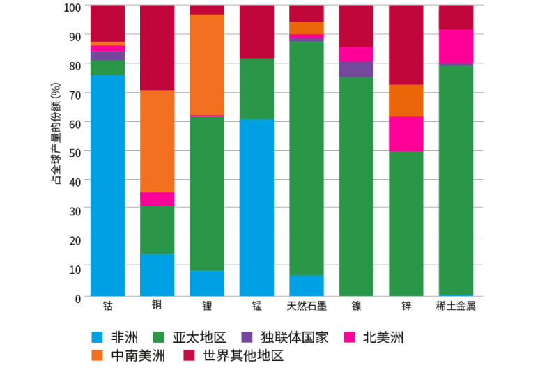 亚太地区在关键矿产(如稀土和天然石墨)的生产中占据主导地位,进一步巩固了其在全球矿产供应链中的核心地位。