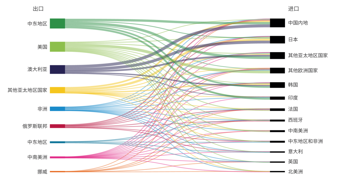 亚太地区在煤炭贸易中占据主导地位,凸显其对传统能源的依赖,同时区域内国家的能源需求也在驱动全球能源供应链的调整。